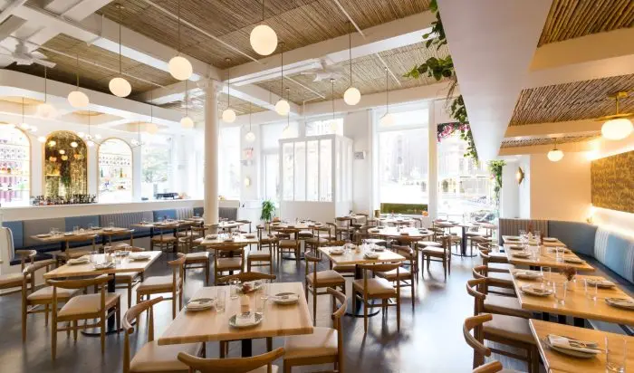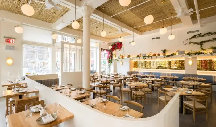 Paros is a contemporary Greek restaurant in Tribeca, designed for brothers Nick and George Pagonis—known for their culinary roots and George’s Top Chef acclaim. The design blends the textured, sun-washed architecture of the Greek islands with the industrial character of Tribeca, creating a space that feels both transportive and local. Natural materials, sculpted surfaces, and warm lighting evoke their Aegean heritage, while honoring the grit and rhythm of New York City’s most storied downtown neighborhood.