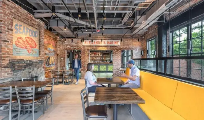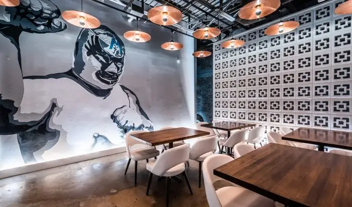 Located on King Street in the heart of Old Town Alexandria, Urbano 116 brings contemporary design to a historic 1885 building originally constructed as a machine shop by brothers John and Harry Aitchison. The restaurant seats over 160 guests and required approval from the Board of Architectural Review. Designed to evoke the energy of Mexico City, the interior blends vibrant modern elements with the building’s industrial heritage to create an immersive, urban dining experience.